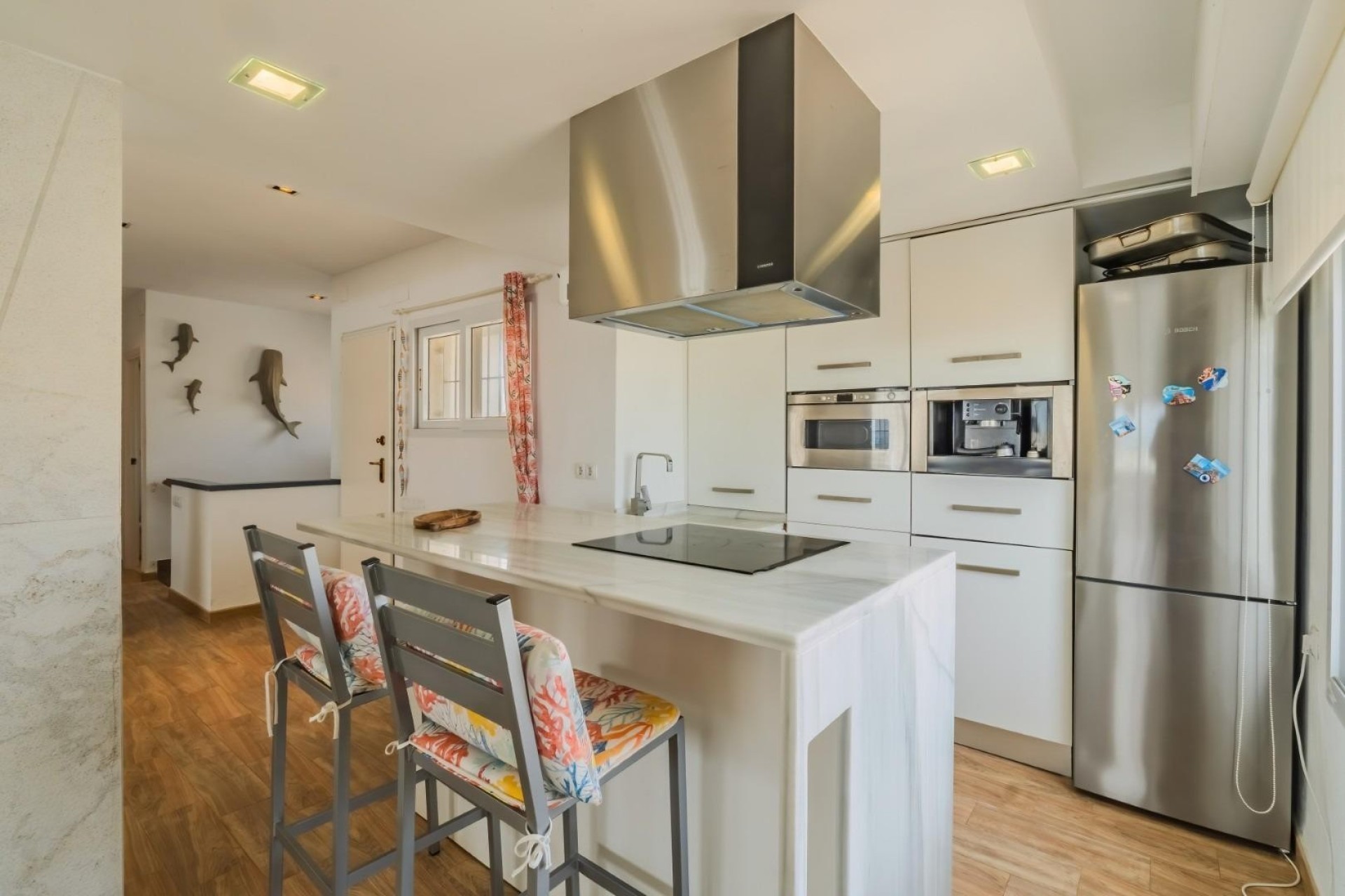 Upptäck denna unika fastighet på stranden i La Manga, perfekt belägen vid det glittrande havet. Med en yta på cirka 300 m² på en tomt på 698 m² erbjuder denna fastighet flexibilitet med två separata våningar, som kan användas som en enhet eller två separata hem eftersom den är ansluten via en intern trappa. Bottenvåningen inkluderar ett kök med alla bekvämligheter med direkt tillgång till tomten, ett rymligt vardagsrum med matplats, ett badrum och tre sovrum, varav ett har eget badrum. Översta våningen har nyligen renoverats med modern design och erbjuder ett stort vardagsrum med öppet kök, en central köksö, tre sovrum och två badrum, varav ett har eget badrum. Denna våning har en hög finish med klinkergolv och marmorväggar. Från vardagsrummet har du tillgång till en imponerande terrass med panoramautsikt över havet. Utanför fastigheten finns en stor tomt med egen stor grillplats där du kan sitta och njuta av underbara middagar och njuta av avskildhet. Detta är en unik möjlighet att äga ett exklusivt hem precis vid havet, med exceptionell komfort och stil. Läge: La Manga - närhet till havet, stränder och restauranger och livet Costa Calida som det kallas är en beskrivning för (den varma kusten) Här finns det mer än 300 soldagar om året. Klimatet är otroligt behagligt och med bra temperaturer både i vattnet och på land under stora delar av året är detta ett bra klimat att både bo och semestra i. La Manga ligger nära stora, vackra städer med mycket historia som Murcia och Cartagena, där du kan tillbringa många år med att utforska och njuta av alla kulturella inslag som finns här. La Manga är känt för sitt kristallklara vatten. Huset har många restauranger och butiker alldeles i närheten inom gångavstånd, och det finns också många möjligheter till vattensporter, paddel, tennis och naturligtvis golf. Stränder och havsupplevelser: Två hav att välja mellan: La Manga är ett långt, smalt näs som skiljer det lugna saltvattnet Mar Menor från det öppna Medelhavet - båda erbjuder vackra stränder. Populära badplatser: Playa Honda, Playa Paraíso, Playa Barco Perdido och Cala del Pino – med lugna förhållanden för bad, solbad och strandliv. Mar Menors vatten: Varmt och grunt, perfekt för familjer och mindre erfarna simmare. Vattensporter och båtliv: Vattensporter: Vindsurfing, kitesurfing, kajakpaddling, paddleboarding, segling och snorkling finns alla tillgängliga i Mar Menors vatten. Båtturer: En båttur i Mar Menor erbjuder utsikt över hela kustlinjen och enklare tillgång till små öar och vikar. Naturupplevelser och utomhusaktiviteter: Calblanque Regional Park: Vild, orörd natur med vandringsleder, picknickområden och spektakulära stränder utan stora turistanläggningar. Salinas y Arenales de San Pedro del Pinatar: Naturreservat med saltslätter och fågelskådning, särskilt bra för ornitologer och naturentusiaster. Lerbad: I San Pedro del Pinatar kan du prova naturliga mineralrika lerbad, kända för sina fördelar för huden. Golf-, sport- och fitnesscenter: La Manga Club: En internationellt erkänd sportanläggning med tre golfbanor, tennis- och padelbanor, spa- och fitnessanläggningar. Kultur, stadsliv och gastronomi: Plaza Bohemia och Avenida Gran Vía i La Manga: Gator med restauranger, barer, kaféer och shopping. Gastronomi: Lokala skaldjur och traditionella rätter som caldero (ris- och fiskrätt) och färska tapas. Tomás Maestre Marina: Marinaområde där du kan promenera, äta med havsutsikt eller ta båtturer. Utforska omgivande städer och platser: Cabo de Palos: Charmig fiskeby med en historisk fyr, marina reservat och karga vikar för dykning och snorkling. Cartagena och Murcia: Städer med rika historiska centrum, museer, restauranger och kulturella upplevelser (och fantastiska dagsutflykter). Familjevänliga och avkopplande aktiviteter: Promenader och cykelturer: Längs Mar Menors promenadstråk och i lugna stadsområden. Marknader och lokala butiker: Lokala marknader (till exempel i Santiago de la Ribera) erbjuder en inblick i regionens produkter, hantverk och mat. Kontakta oss för mer information eller delta i en av våra kostnadsfria visningar för att se denna vackra fastighet.