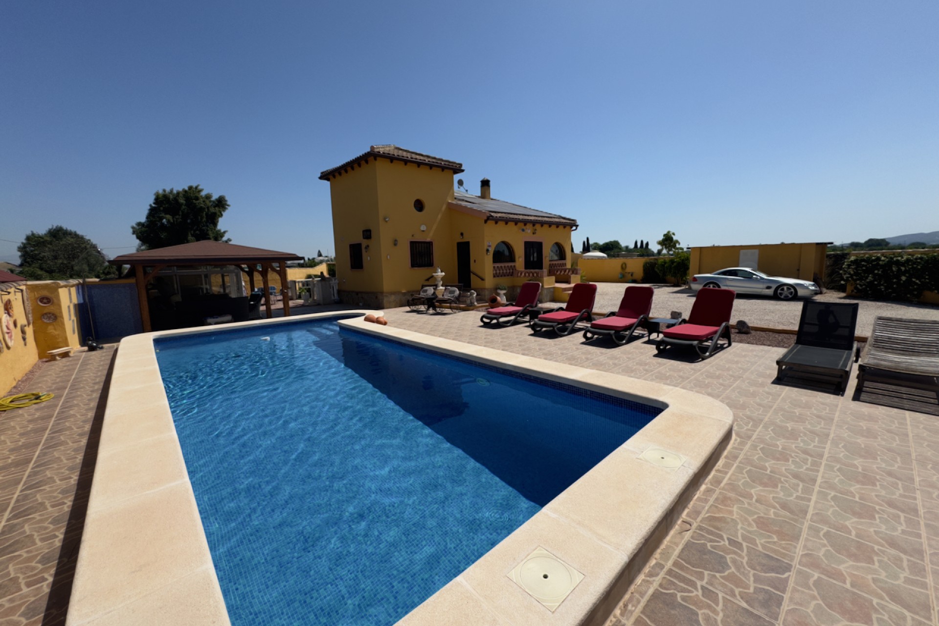 Denna fantastiska finca på landet erbjuder en pittoresk boendeupplevelse med sina fridfulla omgivningar och rymliga layout. Byggd 2004, har fastigheten 3 sovrum, 2 badrum och en extra toalett, som spänner över en bekväm byggd yta på 130m2 på en generös tomt på 7000m2. Med en privat pool och 4 parkeringsplatser, inklusive en gated entré, erbjuder denna finca exklusivitet och avskildhet för sina invånare.