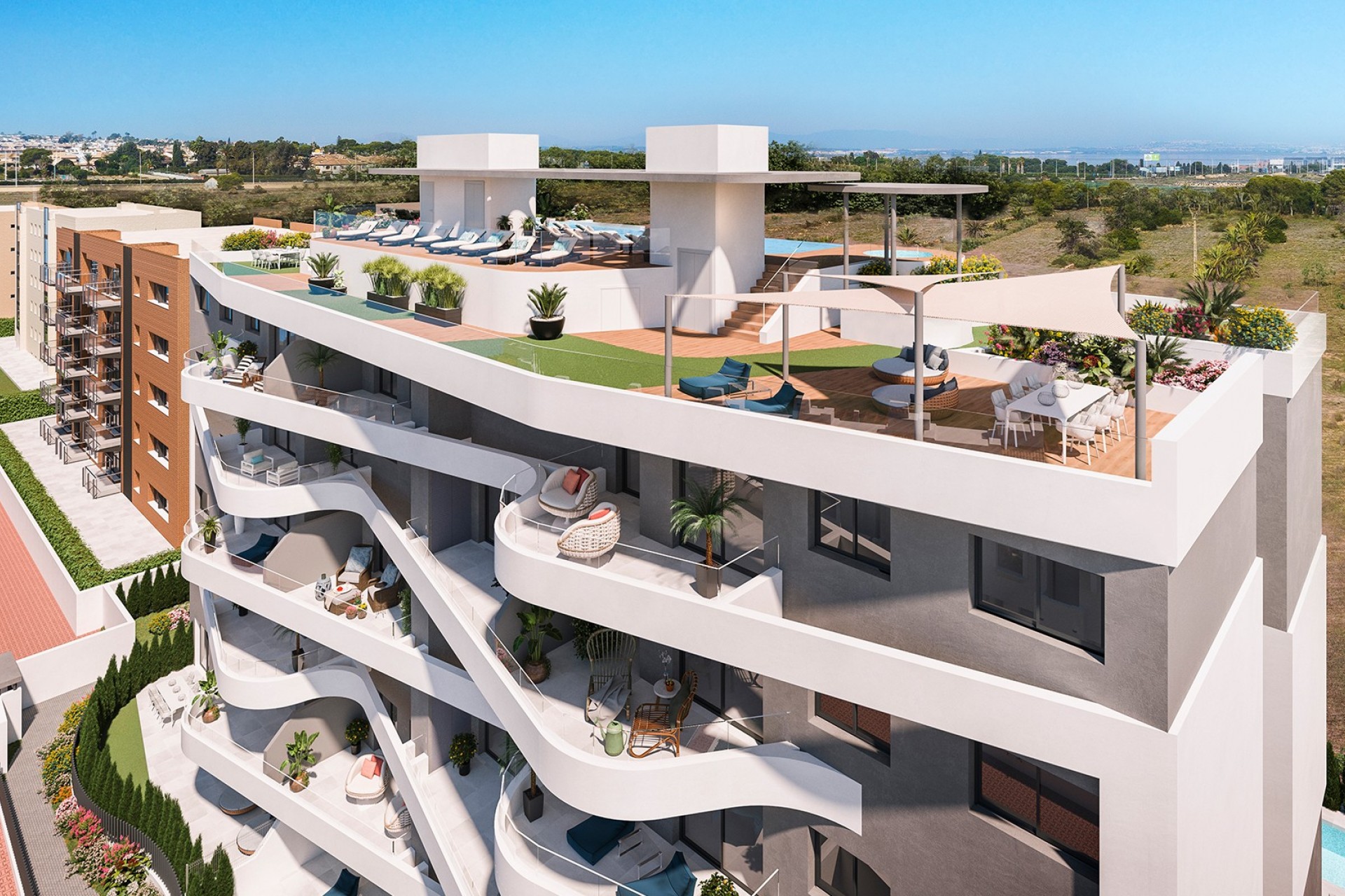 Denna nya bostad består av 36 bostäder med 2 och 3 sovrum och 2 badrum, med parkering och förråd. De gemensamma utrymmena på takterrassen erbjuder 360º utsikt över havet och det omgivande området, en plats där du kan njuta av ett dopp i infinitypoolen eller koppla av i avkopplingsområdet, grilla eller sola på solstolarna medan du har utsikt över havet .